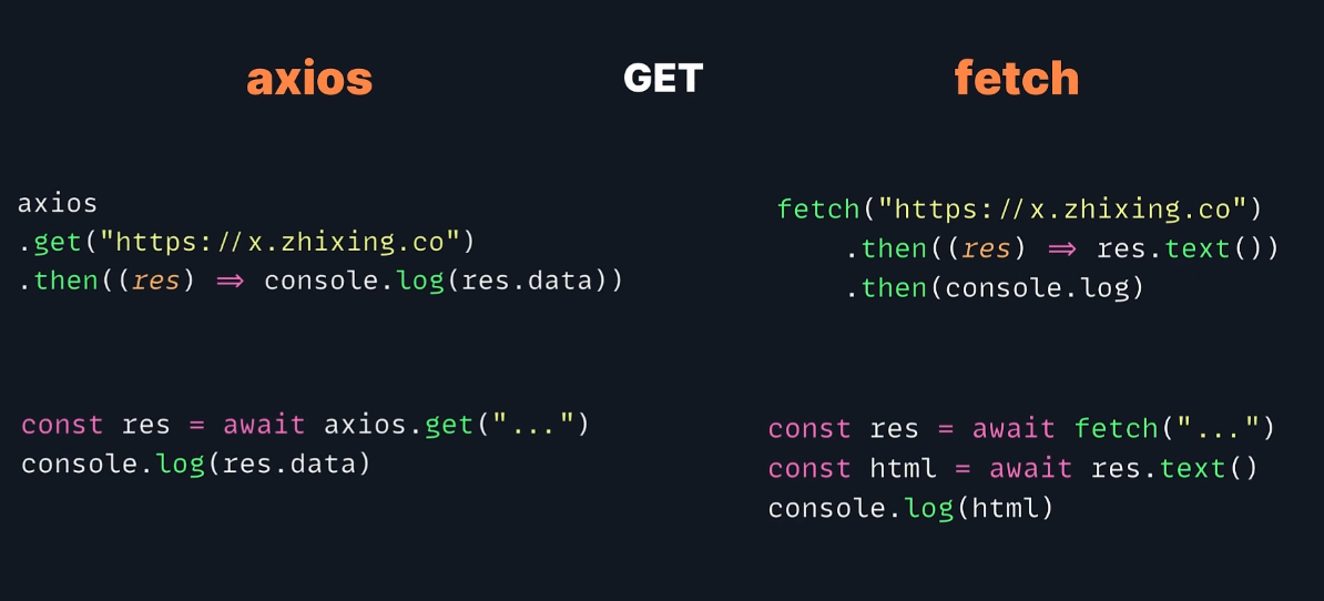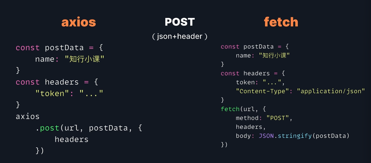 它们最大的不同点在于Fetch是浏览器原生支持,而Axios需要引入Axios库。