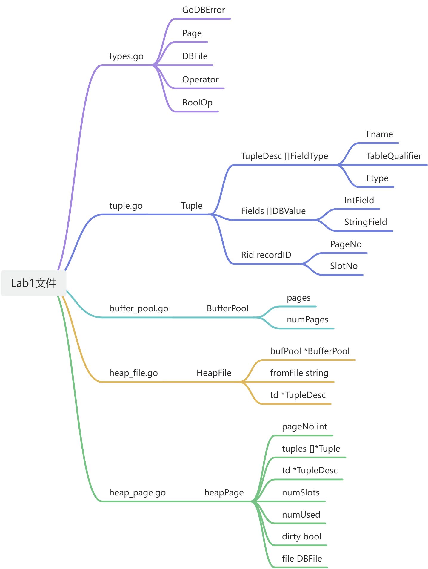 HeapFile对象的页面是实现Page接口的HeapPage类型。页面存储在缓冲池中,但由HeapFile类读取和写入。由于页面大小固定,元组大小固定,因此在GoDB中,所有页面都存储相同数量的元组。您可以自由选择HeapPage的内存实现,但合理的选择应该是一段元组。